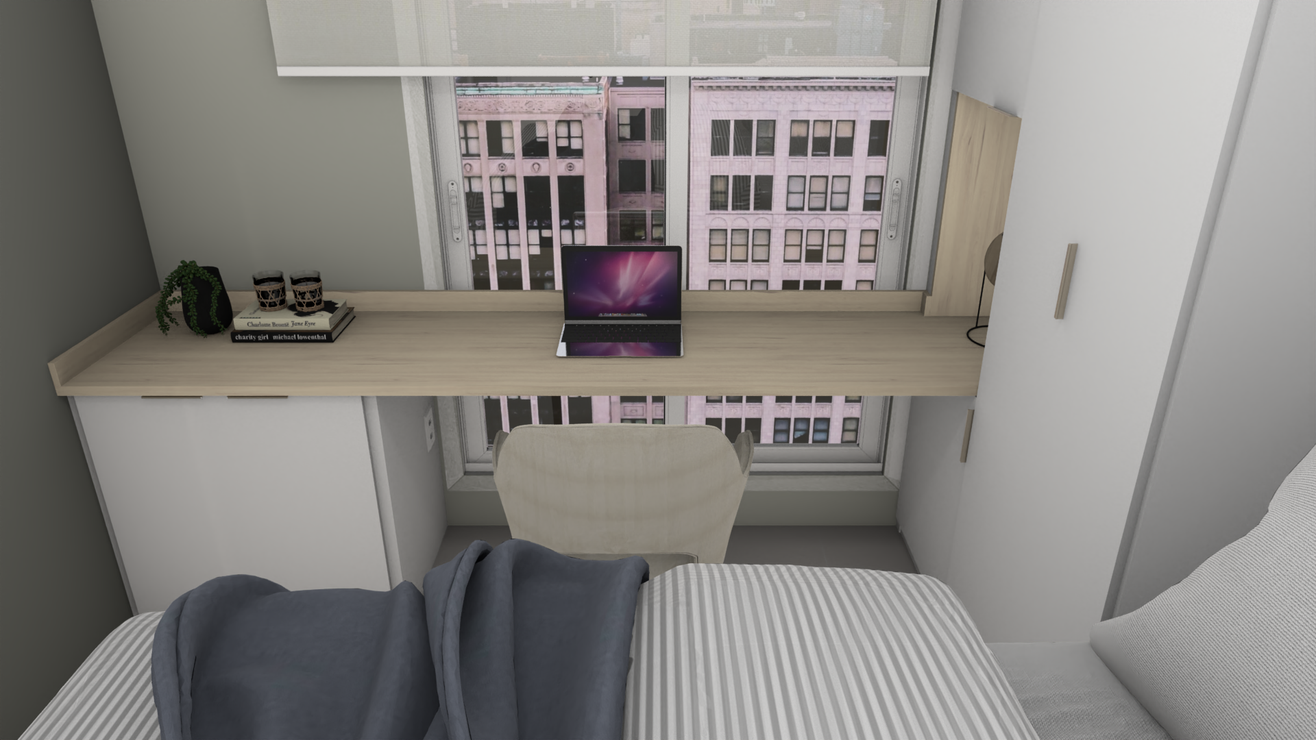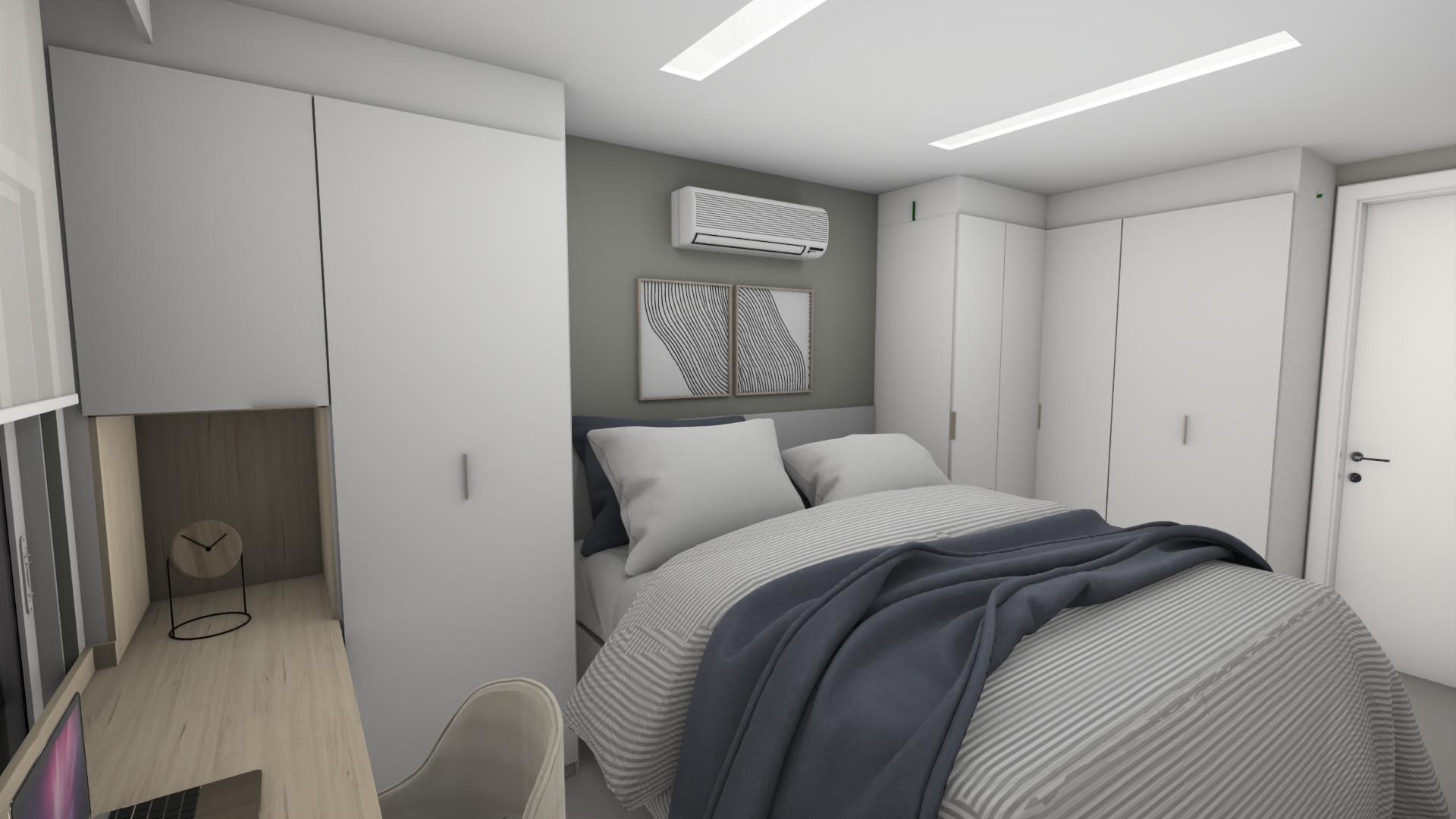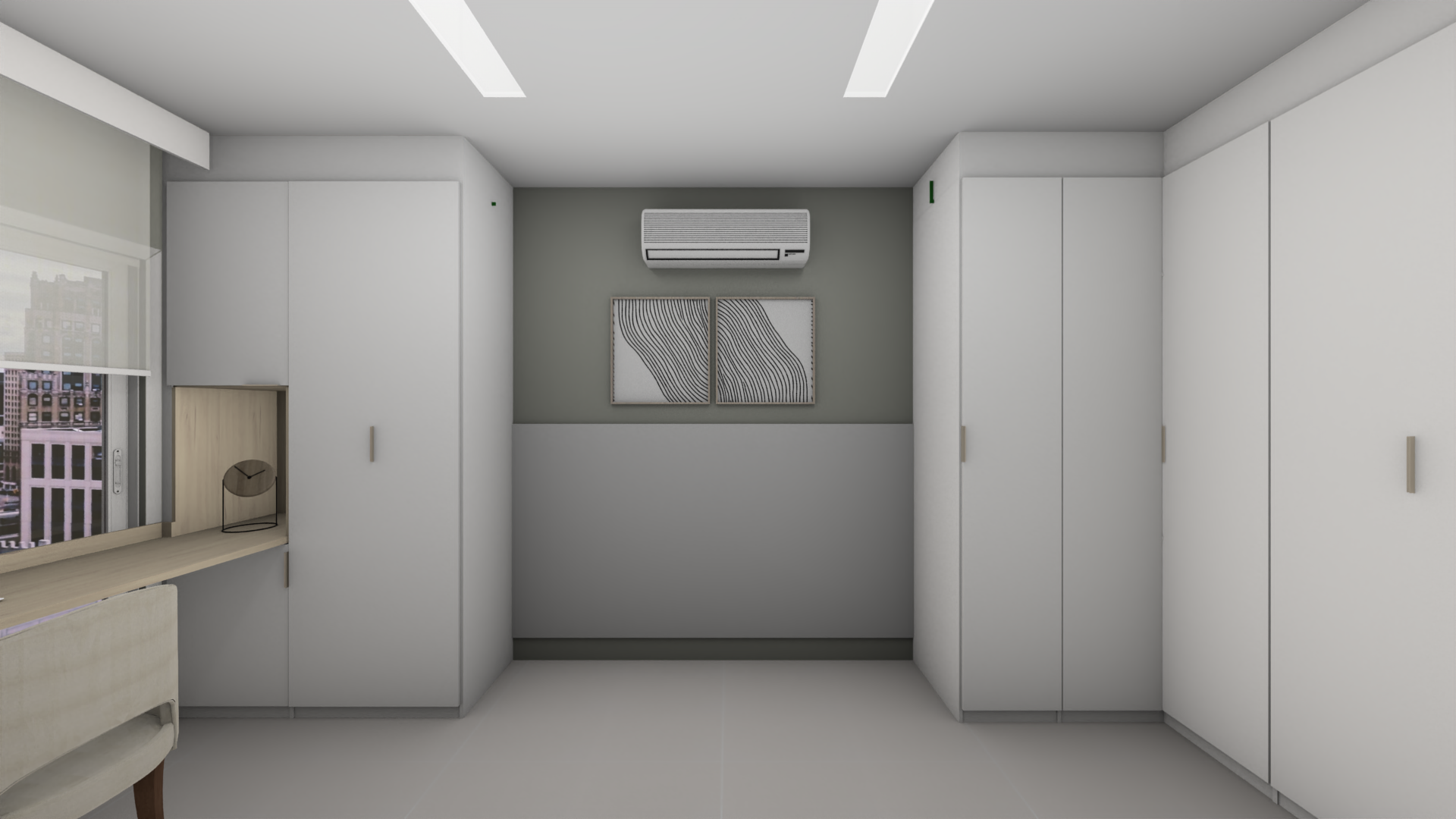 Esse projeto mobiliário tinha como meta ampliar o armazenamento de roupas, sapatos e abrigar um home office.